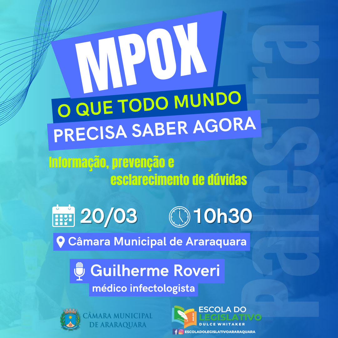 A informação correta é essencial para proteger a saúde e evitar a disseminação de notícias falsas. Por isso, a Escola do Legislativo promove a palestra “Mpox: o que todo mundo precisa saber agora”, com o médico Dr. Guilherme Roveri.