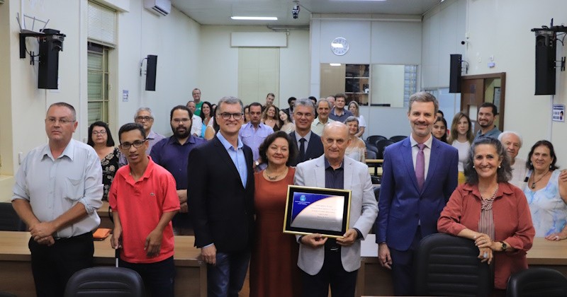 Yashuda, que em 2019 propôs o Diploma de Honra ao Mérito a Pedro Lapena, ressaltou as centenas de empregos diretos e indiretos que a empresa do homenageado gera, contribuindo para o desenvolvimento de Araraquara.