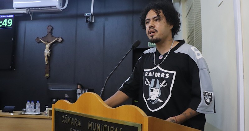 No espaço reservado para a participação popular, representando um grupo de 30 eleitores do município, Denis Victor Sousa falou sobre o Projeto de Lei nº 103/2026, que institui o Programa Municipal de Incentivo às Manifestações da Cultura Hip Hop.