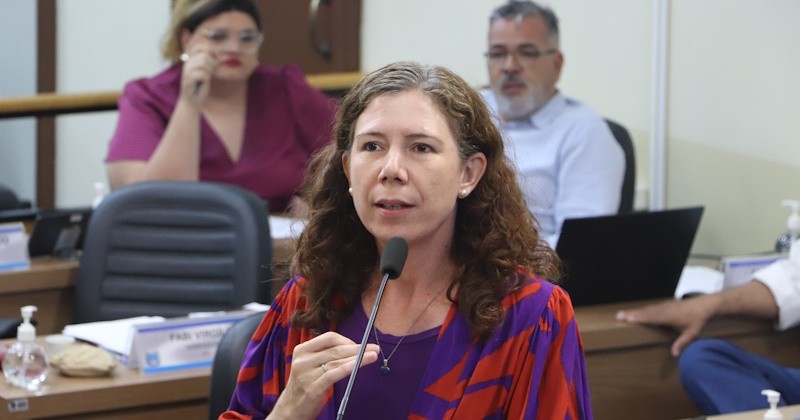 Representando a Secretaria Municipal de Desenvolvimento Social, as assistentes sociais Vivian Karla Koleilat Ruiz e Maria Cláudia Moreira falaram sobre o Projeto de Lei nº 148/2026, que trata da regulamentação da concessão de benefícios eventuais dentro da Política de Assistência Social do Município de Araraquara, como vale-transporte e cesta básica.