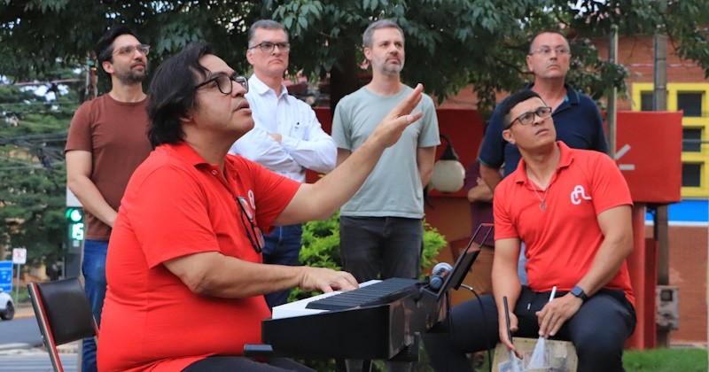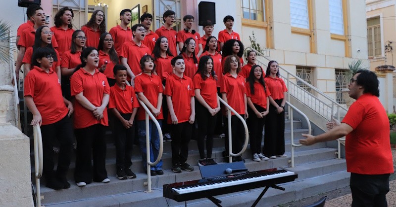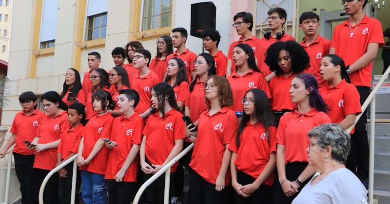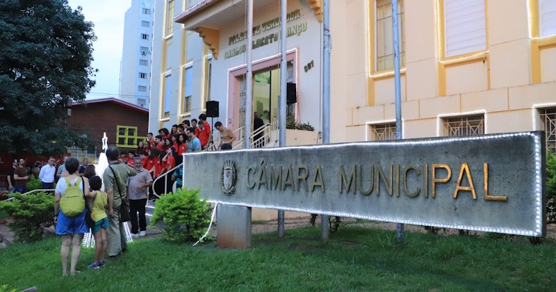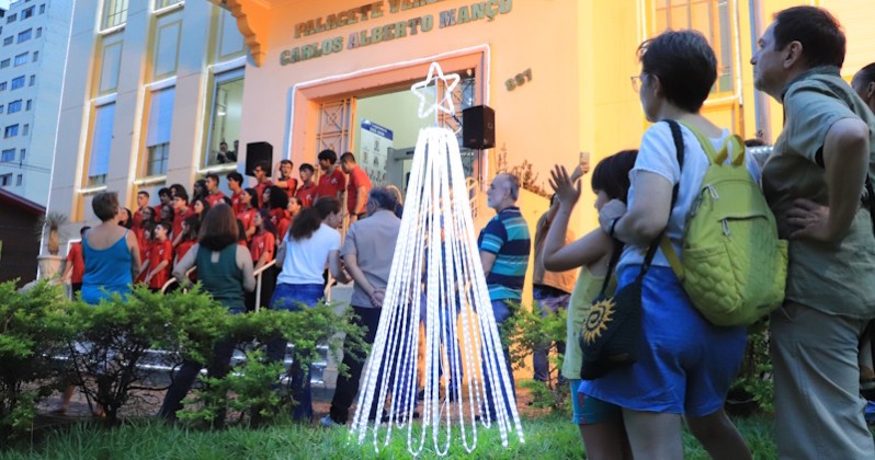 A decoração de Natal do prédio da Câmara Municipal foi inaugurada no início da noite de segunda-feira (1). O evento contou com apresentação do Coro Encanto Teens, sob a regência do maestro Rogério Toledo, do Centro de Artes e Línguas Toledo & Moraes.
