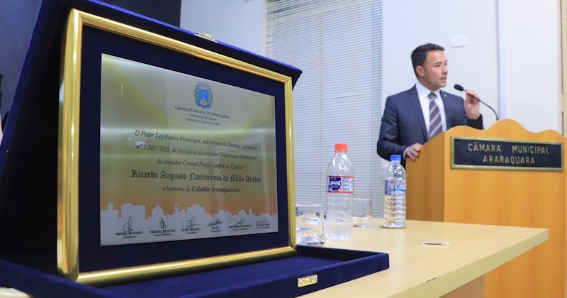 Na noite de sexta-feira (20), a Câmara Municipal entregou o Título de Cidadão Araraquarense ao coronel Ricardo Augusto Nascimento de Mello Araújo (PT), vice-prefeito de São Paulo.
