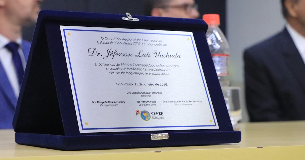 Em solenidade realizada na Câmara de Araraquara na noite desta quarta-feira (21), a Comenda Mérito Farmacêutico foi entregue a Jéferson Luis Yashuda.