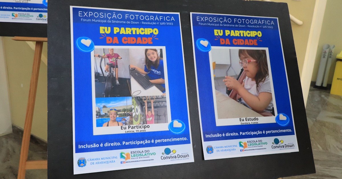 A Câmara de Araraquara realizou na tarde de terça-feira (17) a abertura da exposição fotográfica “Eu Participo da Cidade”, organizada pela Escola do Legislativo “Dulce Whitaker” em parceria com o Instituto Conviva Down.